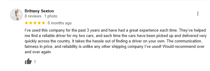Your feedback helps us improve our service and helps others make informed decisions about their vehicle transportation needs.